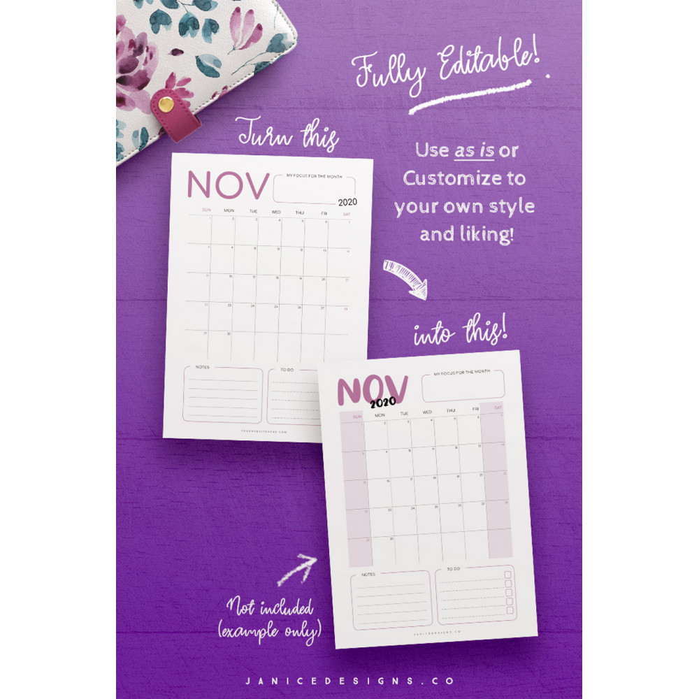 Minimalist 2020 Calendar Layout Buy This Stock Template And