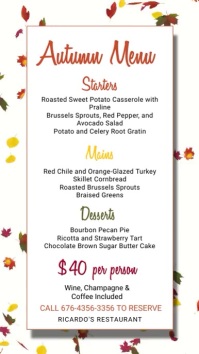 Fill out the template with your own descriptions and print on any standard paper to create an elegant addition to your place setting. Use this accessible menu template to personalize your thanksgiving dinner table. Use canvas drag and drop feature and layouts to design share and print business cards logos presentations and more.