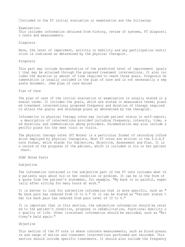Physical Therapy Assessment Documentation Examples
