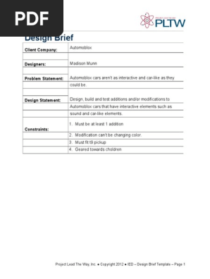 Design Brief Template Free Website Pdf Graphic Example Pltw