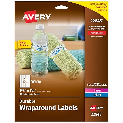 Avery Wraparound Water Bottle Labels For Laser Inkjet Printers 1 25 X 9 75 40 Labels 22845